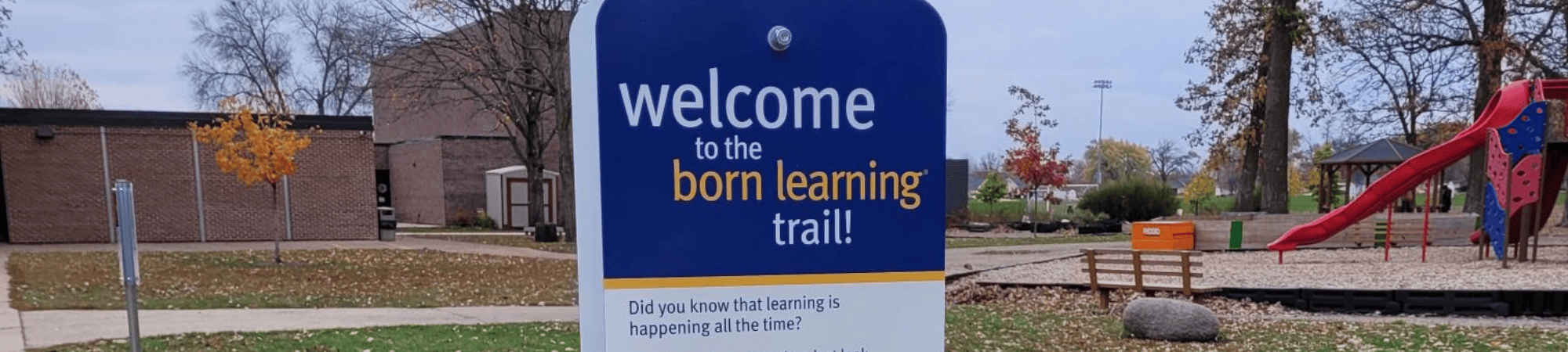 The Born Learning Trail is a series of ten interactive signs that offer fun, active learning activities for young children and their families. It helps parents, caregivers, and communities create quality engagement opportunities when out on a stroll or visiting a local playground.